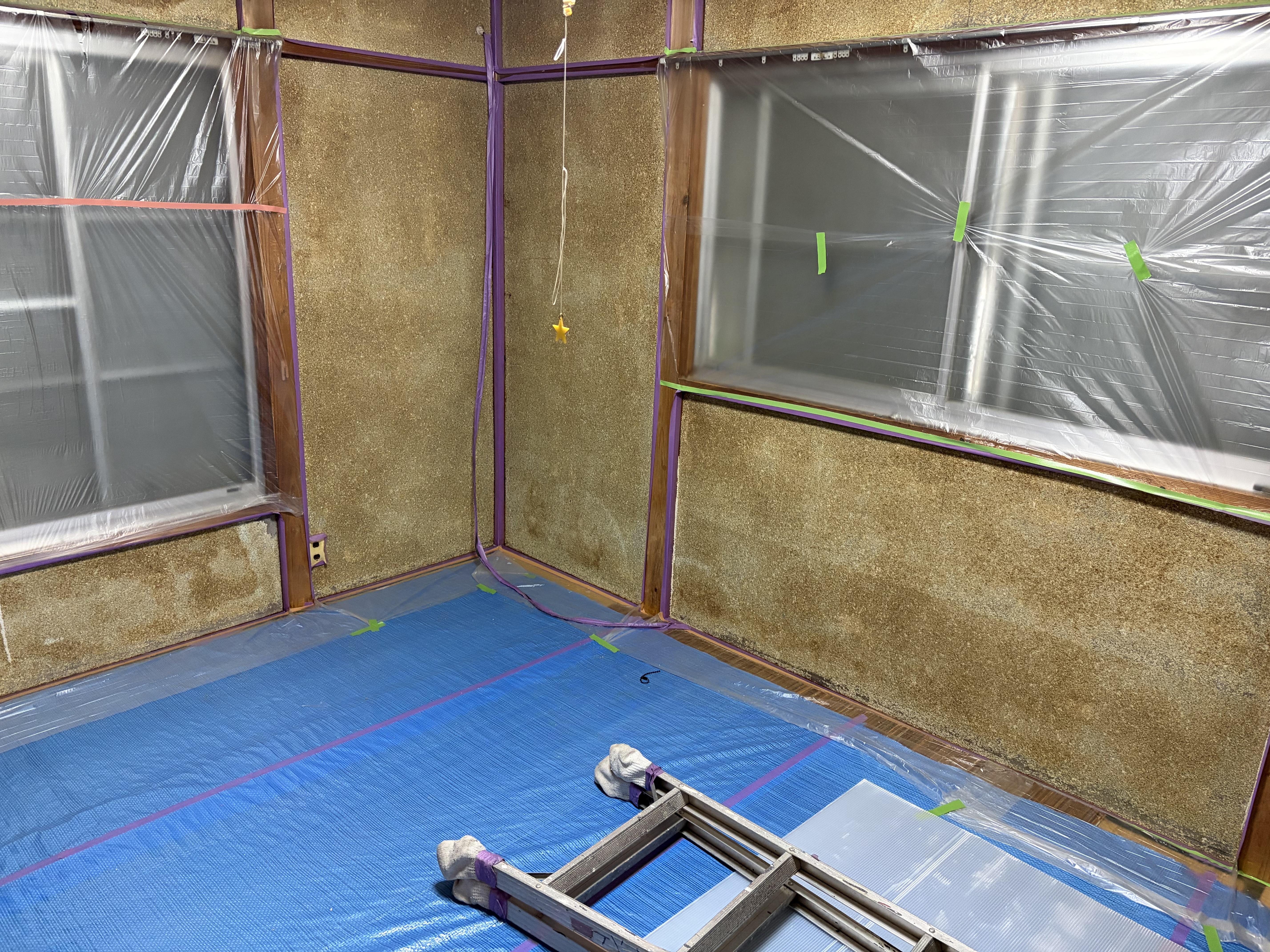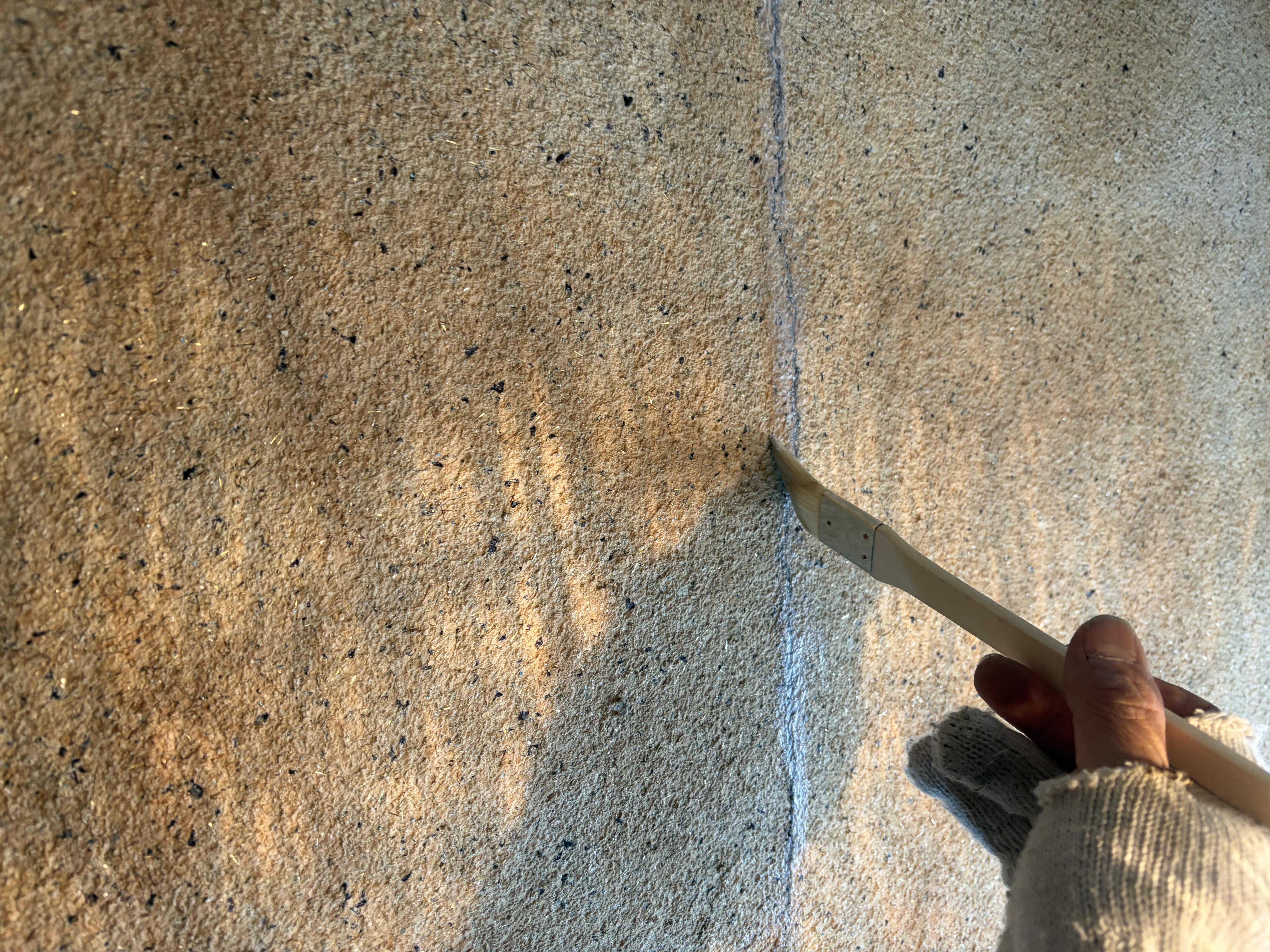 本日腰壁アクセントのTASAI工法サンドクリヤーを吹き付けで仕上げました✨
